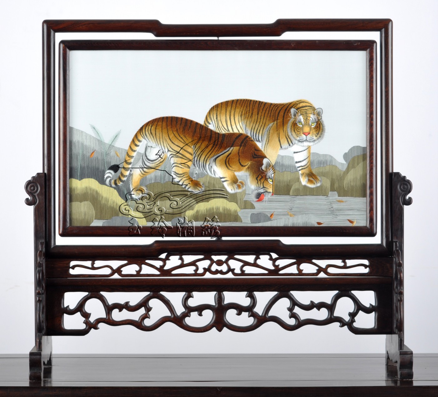 雙面繡 老虎飲水圖