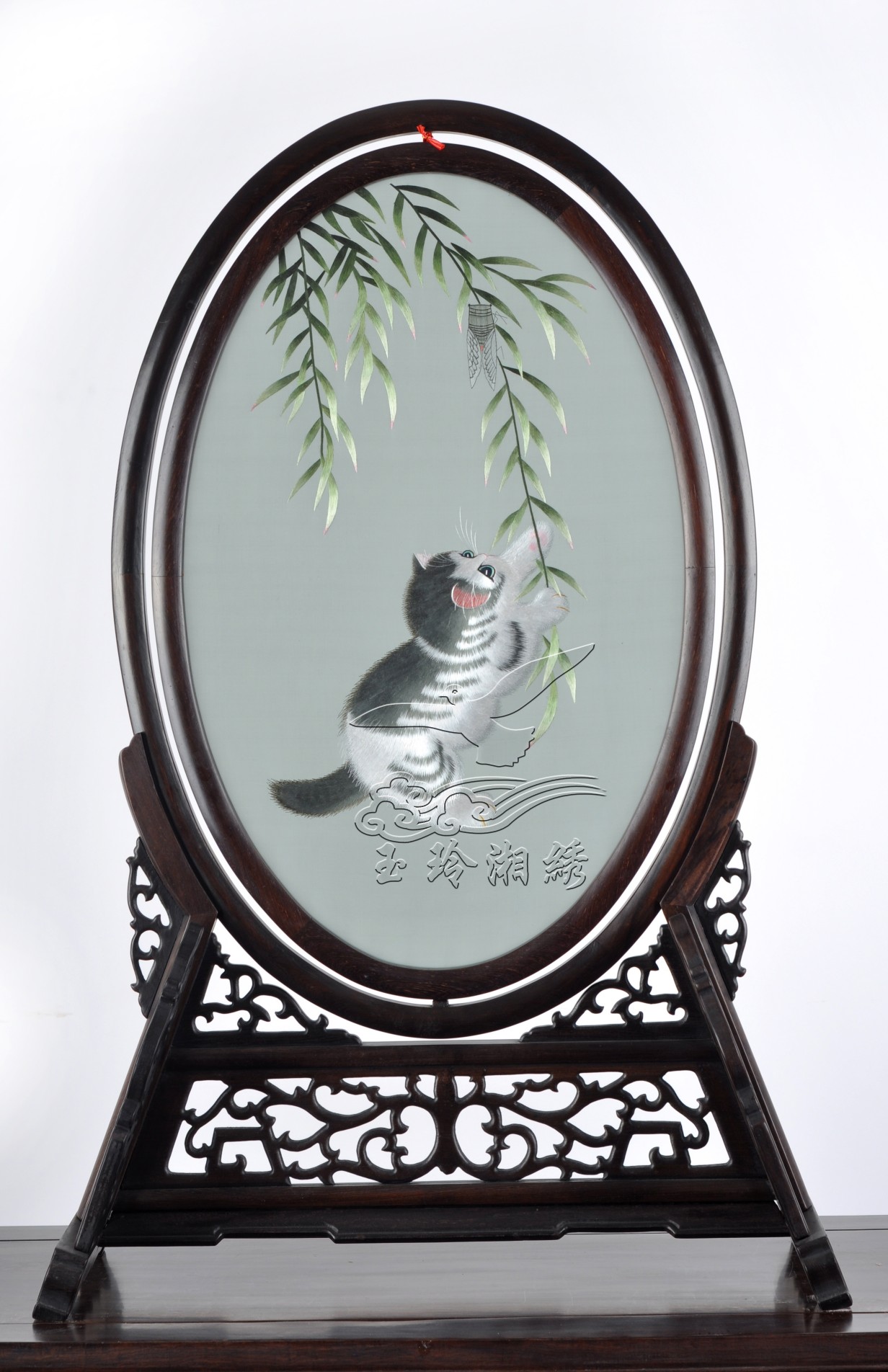 雙面繡 異繡貓戲柳條
