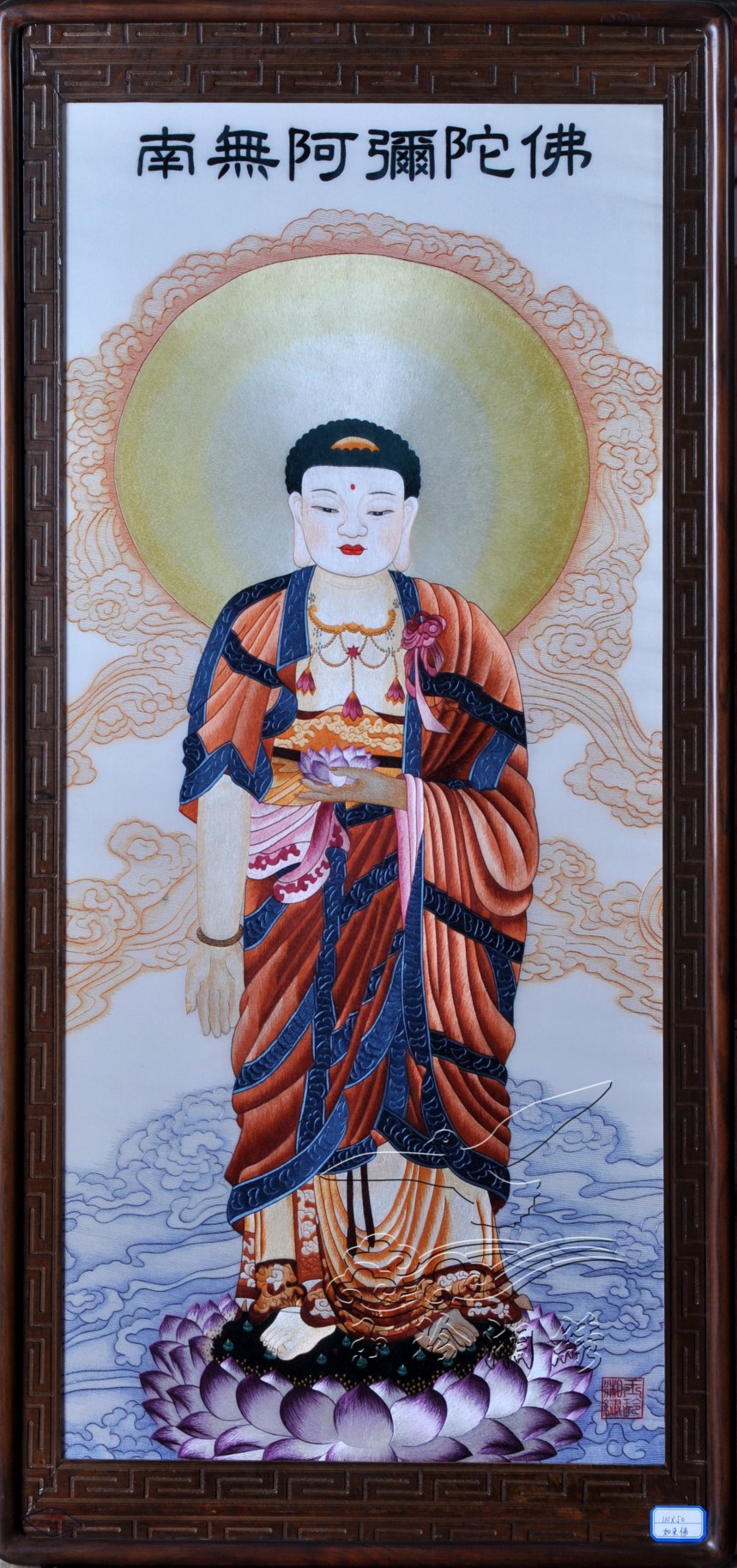滿意100熱線:400-0731-100 聯(lián)系的時候可以說:請問貨號為:1262 的 南無阿彌陀佛 產(chǎn)品,規(guī)格是:帶框:110*50(cm) ......