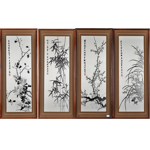 單面繡條屏 梅蘭竹菊