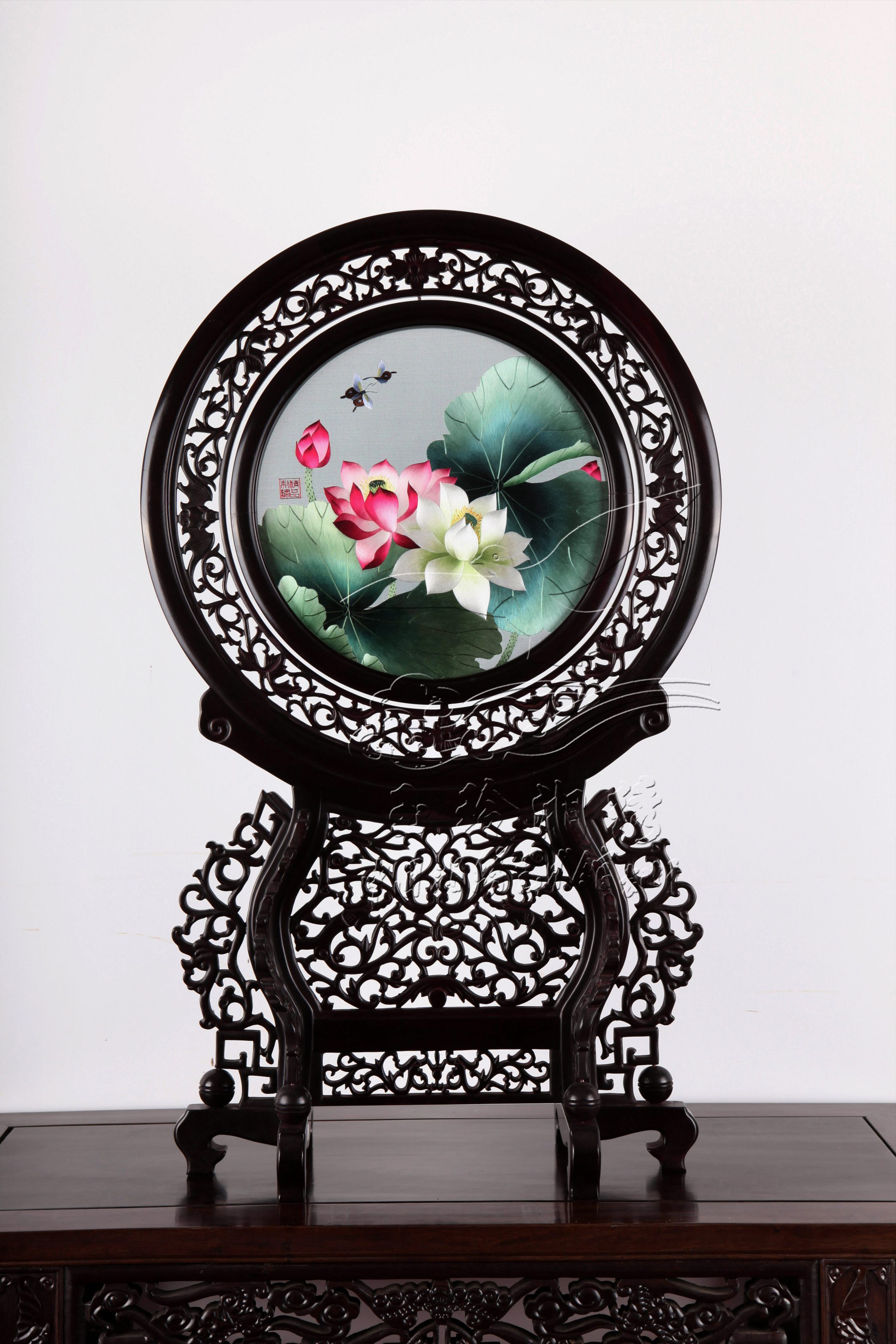 荷花 荷花 產(chǎn)品貨號1823 產(chǎn)品尺寸帶框:48*78(cm) 框架材質(zhì)紫檀木 產(chǎn)品類別雙面繡 咨詢電話400-0731-100 產(chǎn)品介紹 湘繡 荷花 分享按鈕 更多雙面繡 您可能喜歡 紫玉蘭 君子蘭 荷塘清秀 宣異牡丹 水仙 荷塘清趣 郎世寧花鳥