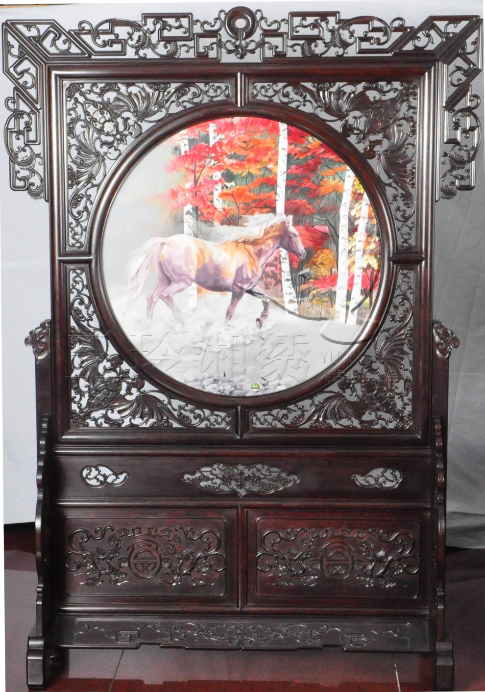 楓林馬 楓林馬 產(chǎn)品貨號3062 產(chǎn)品尺寸帶框:123*187(cm) 框架材質(zhì)酸枝木 產(chǎn)品類別雙面雕花座屏 咨詢電話400-0731-100 產(chǎn)品介紹 湘繡 楓林馬 分享按鈕 更多雙面雕花座屏 您可能喜歡 花瓶花 認(rèn)真 和諧美滿 福 事事如意 盛世和諧 橡樹林