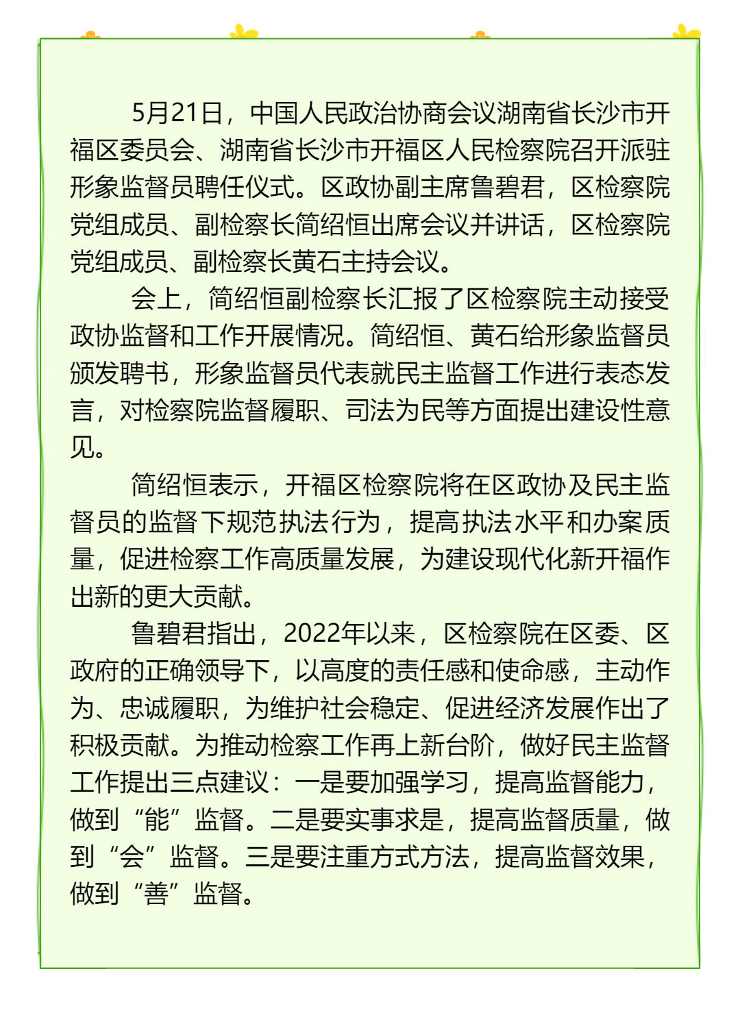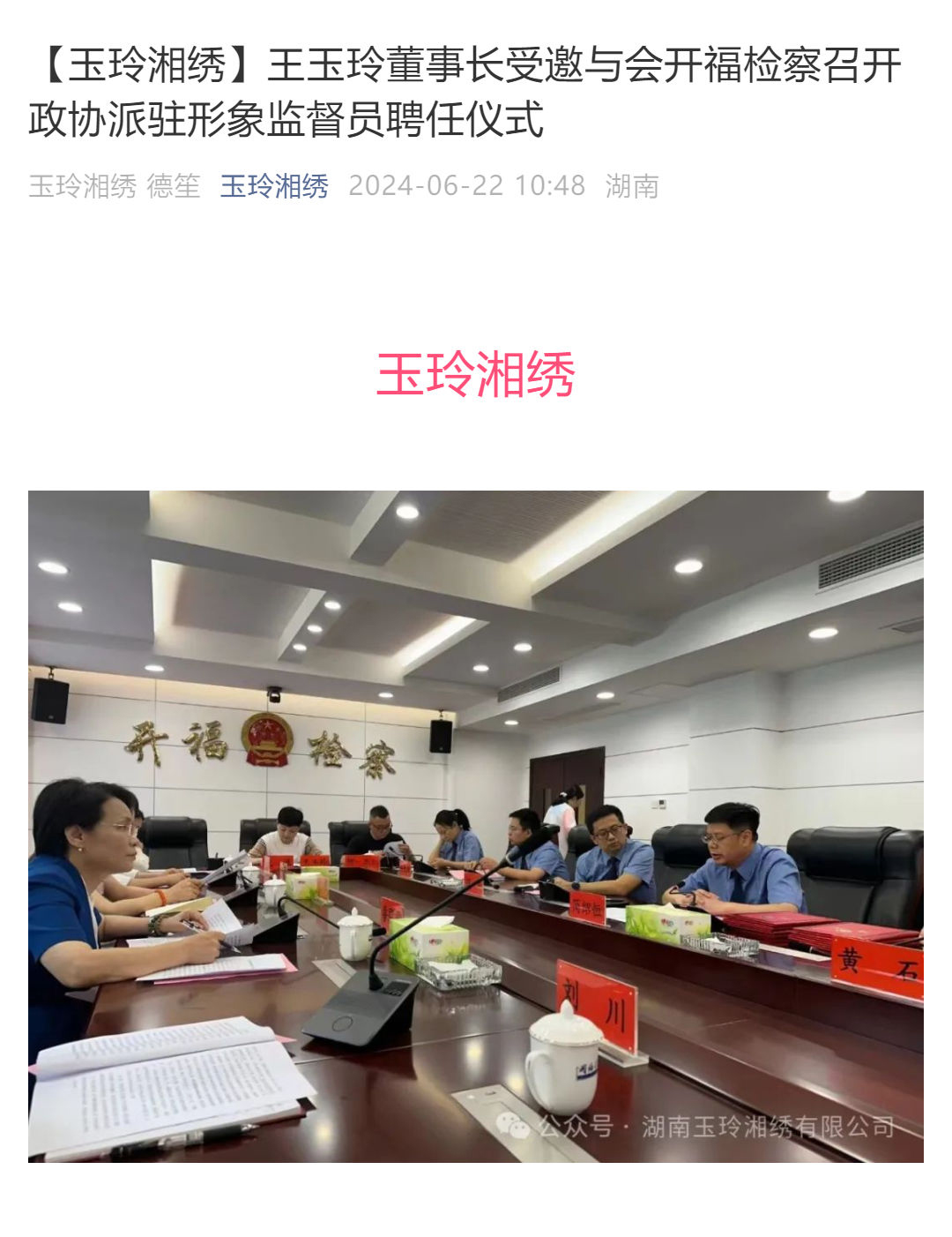 【玉玲湘繡】王玉玲董事長(zhǎng)受邀與會(huì)開(kāi)福檢察召開(kāi)政協(xié)派駐形象監(jiān)督員聘任儀式
